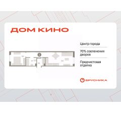 Квартира в счёт первоначального взноса по программе обмена. Звоните, наши менеджеры вам все расскажут! 1-комн. квартира с предчистовой отделкой в ЖК ''Дом Кино'' на 4 этаже. Общая площадь: 43.04 кв.м., жилая: 10.4 кв.м., площадь просторной кухни-гостиной: 18.9 кв.м. Квартира - распашонка, без проходных комнат, окна выходят на paзные стороны дома. В квартире один совмещенный санузел. Высота потолков 2.7 м. Дом монолитный, многоподъездный, переменной этажности, от 8 до 15 этажей. Квартира находится во 2-й секции высотой 9 этажей в корпусе 1. На этаже 7 квартир. В подъезде 1 пассажирский и 1 грузовой лифт. Окончание строительства - 1 квартал 2027 года. Оформление сделки по договору долевого участия. Квартира с кухней-гостиной и одной спальней в Доме кино. Особенности планировки: окна на две стороны, вид во двор, предчистовая отделка.Район Центр города ''Дом кино'' находится в самом центре Кургана, на пересечении улиц Пролетарская и Карла Маркса. Район насыщен всей необходимой инфраструктурой: здесь есть школы, детские сады, поликлиники, больницы, учреждения культуры и досуга, магазины и рестораны, офисы.Рядом расположены автобусные остановки, поэтому можно быстро добраться в любую часть города без автомобиля. В шаговой доступности от дома находится Курганский государственный университет, художественный музей, библиотека имени Маяковского, филармония, городской сквер и торговый центр ''Звёздный''. Проект Новая точка притяжения Проект расположен на месте бывшего кинотеатра ''Звёздный''. В советское время он считался лучшим в области, сотни людей собирались на премьерные кинопоказы. В 2002 году, когда зданию потребовался капитальный ремонт, ''Звёздный'' был закрыт. В 2012 году кинотеатр снесли, а в 2021 году землю приобрела компания Брусника — под строительство нового проекта, который получил название ''Дом кино''. Проект представляет собой квартал, разомкнутый в сторону сквера. Архитектура дома идентична исторической застройке района и гармонично вписывается в его панораму. Основная часть здания имеет высотность девять этажей. Башня является доминантой и ориентирована на городской сквер, ее высота 15 этажей. Фасады выполнены в теплой цветовой гамме коричневых и песочных оттенков. Яркой архитектурной деталью проекта станет арка высотой более чем в два этажа. Она раскинется над лестницей, которая ведет напрямую в городской сквер из двора.  Двор Двор с выходом в сквер Двор - это приватное пространство для жителей, закрытое от машин. В нём спроектированы детская и спортивная площадки, выполненные из натуральных материалов, а также зоны отдыха. Прямой выход в городской сквер расширяет функционал двора. Жители смогут быстро попадать в общественную зону с фонтаном, детскими и спортивными площадками и местами для отдыха.Большую часть территории двора занимает зелень. Озеленение выполнено в стиле пэчворк, и вдохновлено техникой лоскутного шитья. Отдельные фрагменты ландшафта, подобно лоскутам, гармонично складываются в планировочные