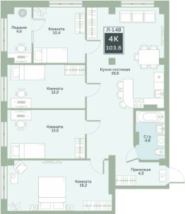 Просторная 4-комнатная квартира 104 в жилом комплексе комфорт-класса Районы-кварталы. Квартира находится в 1 секции 1 этапа. Этаж 14 -й из 17.Квартира с предчистовой отделкой, с продуманной функциональной планировкой: кухня-гостиная 35.6 м2, жилая площадь 54.3 м2, высота потолка 2,76 м.