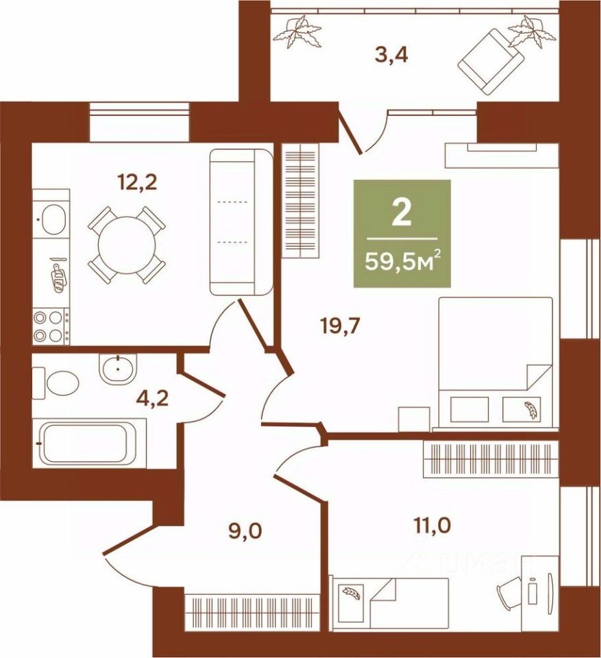 59 м² · Этаж 9 из 9
