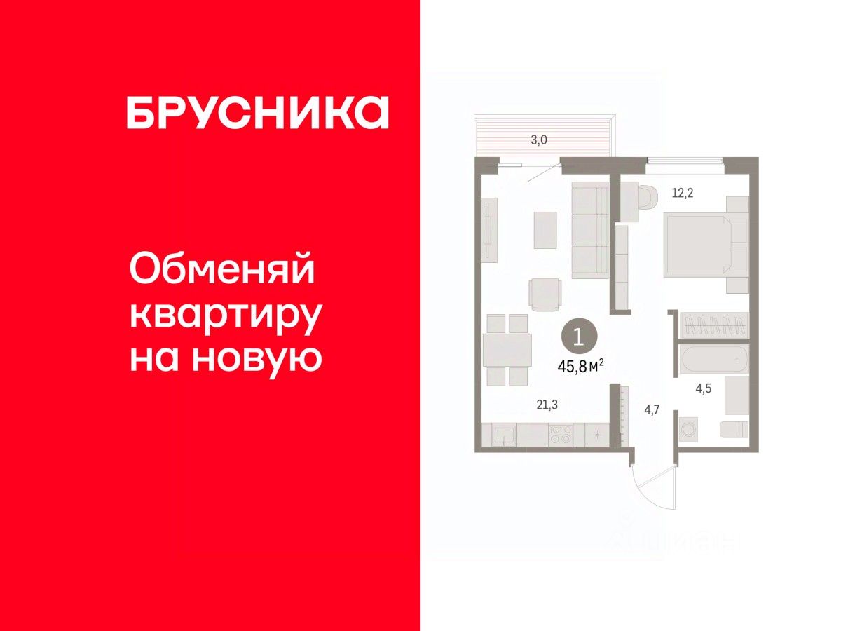 1-комн. квартира с предчистовой отделкой в ЖК ''Дом Кино'' на 5 этаже. Общая площадь: 45.75 кв.м., жилая: 12.2 кв.м., площадь просторной кухни-гостиной: 21.3 кв.м. Все окна выходят на одну сторону. В квартире один балкон, один совмещенный санузел. Высота потолков 2.7 м. Дом монолитный, многоподъездный, переменной этажности, от 8 до 15 этажей. Квартира находится в 6-й секции высотой 15 этажей в корпусе 1. На этаже 7 квартир. В подъезде 2 пассажирских и 1 грузовой лифт. Окончание строительства - 1 квартал 2027 года. Оформление сделки по договору долевого участия. Квартира с кухней-гостиной и одной спальней в Доме кино. Особенности планировки: балкон, гардеробная, предчистовая отделка. Район Центр города ''Дом кино'' находится в самом центре Кургана, на пересечении улиц Пролетарская и Карла Маркса. Район насыщен всей необходимой инфраструктурой: здесь есть школы, детские сады, поликлиники, больницы, учреждения культуры и досуга, магазины и рестораны, офисы. Рядом расположены автобусные остановки, поэтому можно быстро добраться в любую часть города без автомобиля. В шаговой доступности от дома находится Курганский государственный университет, художественный музей, библиотека имени Маяковского, филармония, городской сквер и торговый центр ''Звёздный''. Проект Новая точка притяжения Проект расположен на месте бывшего кинотеатра ''Звёздный''. В советское время он считался лучшим в области, сотни людей собирались на премьерные кинопоказы. В 2002 году, когда зданию потребовался капитальный ремонт, ''Звёздный'' был закрыт. В 2012 году кинотеатр снесли, а в 2021 году землю приобрела компания Брусника — под строительство нового проекта, который получил название ''Дом кино''. Проект представляет собой квартал, разомкнутый в сторону сквера. Архитектура дома идентична исторической застройке района и гармонично вписывается в его панораму. Основная часть здания имеет высотность девять этажей. Башня является доминантой и ориентирована на городской сквер, ее высота 15 этажей. Фасады выполнены в теплой цветовой гамме коричневых и песочных оттенков. Яркой архитектурной деталью проекта станет арка высотой более чем в два этажа. Она раскинется над лестницей, которая ведет напрямую в городской сквер из двора. Двор Двор с выходом в сквер Двор - это приватное пространство для жителей, закрытое от машин. В нём спроектированы детская и спортивная площадки, выполненные из натуральных материалов, а также зоны отдыха. Прямой выход в городской сквер расширяет функционал двора. Жители смогут быстро попадать в общественную зону с фонтаном, детскими и спортивными площадками и местами для отдыха. Большую часть территории двора занимает зелень. Озеленение выполнено в стиле пэчворк, и вдохновлено техникой лоскутного шитья. Отдельные фрагменты ландшафта, подобно лоскутам, гармонично складываются в планировочные элементы, а затем формируют цельную композицию. Растения представлены различными видами деревьев, кустарников, а также цветущими многолетниками. Зелень и