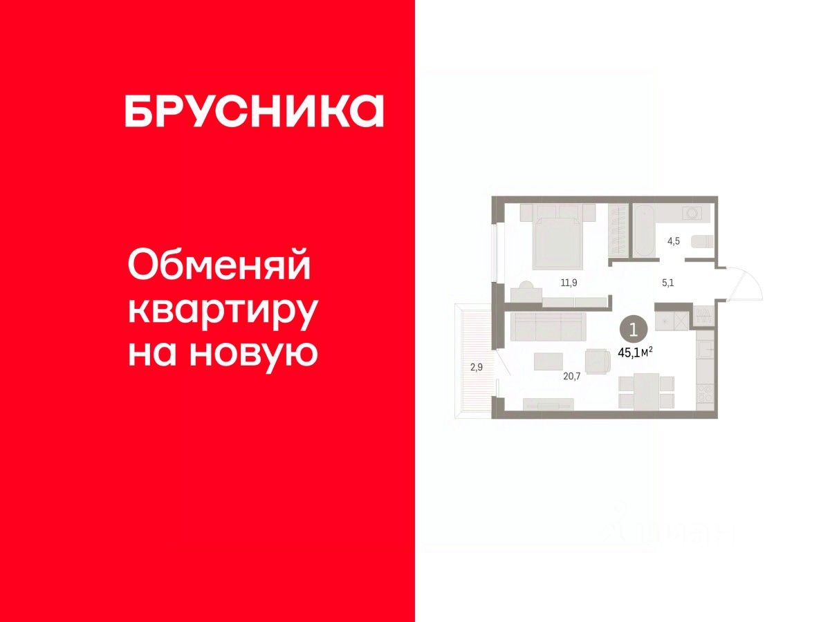 1-комн. квартира от застройщика с предчистовой отделкой в ЖК ''Дом Кино'' на 2 этаже. Общая площадь: 45.11 кв.м., жилая: 11.9 кв.м., площадь просторной кухни-гостиной: 20.7 кв.м. Все окна выходят на одну сторону. В квартире один балкон, один совмещенный санузел. Высота потолков 2.7 м. Дом монолитный, многоподъездный, переменной этажности, от 8 до 15 этажей. Квартира находится в 4-й секции высотой 8 этажей в корпусе 1. На этаже 6 квартир. В подъезде 1 пассажирский и 1 грузовой лифт. Окончание строительства - 1 квартал 2027 года. Оформление сделки по договору долевого участия. Квартира с кухней-гостиной и одной спальней в Доме кино. Особенности планировки: балкон, предчистовая отделка. Район Центр города ''Дом кино'' находится в самом центре Кургана, на пересечении улиц Пролетарская и Карла Маркса. Район насыщен всей необходимой инфраструктурой: здесь есть школы, детские сады, поликлиники, больницы, учреждения культуры и досуга, магазины и рестораны, офисы. Рядом расположены автобусные остановки, поэтому можно быстро добраться в любую часть города без автомобиля. В шаговой доступности от дома находится Курганский государственный университет, художественный музей, библиотека имени Маяковского, филармония, городской сквер и торговый центр ''Звёздный''. Проект Новая точка притяжения Проект расположен на месте бывшего кинотеатра ''Звёздный''. В советское время он считался лучшим в области, сотни людей собирались на премьерные кинопоказы. В 2002 году, когда зданию потребовался капитальный ремонт, ''Звёздный'' был закрыт. В 2012 году кинотеатр снесли, а в 2021 году землю приобрела компания Брусника — под строительство нового проекта, который получил название ''Дом кино''. Проект представляет собой квартал, разомкнутый в сторону сквера. Архитектура дома идентична исторической застройке района и гармонично вписывается в его панораму. Основная часть здания имеет высотность девять этажей. Башня является доминантой и ориентирована на городской сквер, ее высота 15 этажей. Фасады выполнены в теплой цветовой гамме коричневых и песочных оттенков. Яркой архитектурной деталью проекта станет арка высотой более чем в два этажа. Она раскинется над лестницей, которая ведет напрямую в городской сквер из двора. Двор Двор с выходом в сквер Двор - это приватное пространство для жителей, закрытое от машин. В нём спроектированы детская и спортивная площадки, выполненные из натуральных материалов, а также зоны отдыха. Прямой выход в городской сквер расширяет функционал двора. Жители смогут быстро попадать в общественную зону с фонтаном, детскими и спортивными площадками и местами для отдыха. Большую часть территории двора занимает зелень. Озеленение выполнено в стиле пэчворк, и вдохновлено техникой лоскутного шитья. Отдельные фрагменты ландшафта, подобно лоскутам, гармонично складываются в планировочные элементы, а затем формируют цельную композицию. Растения представлены различными видами деревьев, кустарников, а также цветущими многолетниками. Зелень и