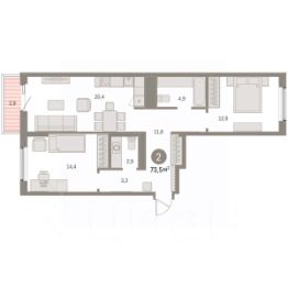 Просторная 2-комн. квартира с предчистовой отделкой в ЖК ''Дом Кино'' на 5 этаже. Общая площадь: 73.45 кв.м., жилая: 27.3 кв.м., площадь просторной кухни-гостиной: 20.4 кв.м. Квартира - распашонка, без проходных комнат, окна выходят на paзные стороны дома. В квартире один балкон, один совмещенный и один раздельный санузел. Высота потолков 2.7 м. Дом монолитный, многоподъездный, переменной этажности, от 8 до 15 этажей. Квартира находится в 4-й секции высотой 8 этажей в корпусе 1. На этаже 6 квартир. В подъезде 1 пассажирский и 1 грузовой лифт. Окончание строительства - 1 квартал 2027 года. Оформление сделки по договору долевого участия. Квартира с кухней-гостиной и двумя спальнями в Доме кино. Особенности планировки: балкон, вид во двор, второй санузел, окна на две стороны, предчистовая отделка, разнесённые спальни.Район Центр города ''Дом кино'' находится в самом центре Кургана, на пересечении улиц Пролетарская и Карла Маркса. Район насыщен всей необходимой инфраструктурой: здесь есть школы, детские сады, поликлиники, больницы, учреждения культуры и досуга, магазины и рестораны, офисы.Рядом расположены автобусные остановки, поэтому можно быстро добраться в любую часть города без автомобиля. В шаговой доступности от дома находится Курганский государственный университет, художественный музей, библиотека имени Маяковского, филармония, городской сквер и торговый центр ''Звёздный''. Проект Новая точка притяжения Проект расположен на месте бывшего кинотеатра ''Звёздный''. В советское время он считался лучшим в области, сотни людей собирались на премьерные кинопоказы. В 2002 году, когда зданию потребовался капитальный ремонт, ''Звёздный'' был закрыт. В 2012 году кинотеатр снесли, а в 2021 году землю приобрела компания Брусника — под строительство нового проекта, который получил название ''Дом кино''. Проект представляет собой квартал, разомкнутый в сторону сквера. Архитектура дома идентична исторической застройке района и гармонично вписывается в его панораму. Основная часть здания имеет высотность девять этажей. Башня является доминантой и ориентирована на городской сквер, ее высота 15 этажей. Фасады выполнены в теплой цветовой гамме коричневых и песочных оттенков. Яркой архитектурной деталью проекта станет арка высотой более чем в два этажа. Она раскинется над лестницей, которая ведет напрямую в городской сквер из двора. Двор Двор с выходом в сквер Двор - это приватное пространство для жителей, закрытое от машин. В нём спроектированы детская и спортивная площадки, выполненные из натуральных материалов, а также зоны отдыха. Прямой выход в городской сквер расширяет функционал двора. Жители смогут быстро попадать в общественную зону с фонтаном, детскими и спортивными площадками и местами для отдыха.Большую часть территории двора занимает зелень. Озеленение выполнено в стиле пэчворк, и вдохновлено техникой лоскутного шитья. Отдельные фрагменты ландшафта, подобно лоскутам, гармонично складываются в планировочные элементы, а затем ф