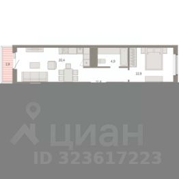1-комн. студия с предчистовой отделкой в ЖК ''Дом Кино'' на 12 этаже. Общая площадь: 23.91 кв.м., площадь гостиной 14.6 кв.м., из которых 5 кв.м. выделено под кухонную зону. Все окна выходят на одну сторону. В квартире один балкон, один совмещенный санузел. Высота потолков 2.7 м. Дом монолитный, многоподъездный, переменной этажности, от 8 до 15 этажей. Квартира находится в 6-й секции высотой 15 этажей в корпусе 1. На этаже 7 квартир. В подъезде 2 пассажирских и 1 грузовой лифт. Окончание строительства - 1 квартал 2027 года. Оформление сделки по договору долевого участия. Студия в Доме кино. Особенности планировки: балкон, предчистовая отделка.Район Центр города ''Дом кино'' находится в самом центре Кургана, на пересечении улиц Пролетарская и Карла Маркса. Район насыщен всей необходимой инфраструктурой: здесь есть школы, детские сады, поликлиники, больницы, учреждения культуры и досуга, магазины и рестораны, офисы.Рядом расположены автобусные остановки, поэтому можно быстро добраться в любую часть города без автомобиля. В шаговой доступности от дома находится Курганский государственный университет, художественный музей, библиотека имени Маяковского, филармония, городской сквер и торговый центр ''Звёздный''. Проект Новая точка притяжения Проект расположен на месте бывшего кинотеатра ''Звёздный''. В советское время он считался лучшим в области, сотни людей собирались на премьерные кинопоказы. В 2002 году, когда зданию потребовался капитальный ремонт, ''Звёздный'' был закрыт. В 2012 году кинотеатр снесли, а в 2021 году землю приобрела компания Брусника — под строительство нового проекта, который получил название ''Дом кино''. Проект представляет собой квартал, разомкнутый в сторону сквера. Архитектура дома идентична исторической застройке района и гармонично вписывается в его панораму. Основная часть здания имеет высотность девять этажей. Башня является доминантой и ориентирована на городской сквер, ее высота 15 этажей. Фасады выполнены в теплой цветовой гамме коричневых и песочных оттенков. Яркой архитектурной деталью проекта станет арка высотой более чем в два этажа. Она раскинется над лестницей, которая ведет напрямую в городской сквер из двора. Двор Двор с выходом в сквер Двор - это приватное пространство для жителей, закрытое от машин. В нём спроектированы детская и спортивная площадки, выполненные из натуральных материалов, а также зоны отдыха. Прямой выход в городской сквер расширяет функционал двора. Жители смогут быстро попадать в общественную зону с фонтаном, детскими и спортивными площадками и местами для отдыха.Большую часть территории двора занимает зелень. Озеленение выполнено в стиле пэчворк, и вдохновлено техникой лоскутного шитья. Отдельные фрагменты ландшафта, подобно лоскутам, гармонично складываются в планировочные элементы, а затем формируют цельную композицию.Растения представлены различными видами деревьев, кустарников, а также цветущими многолетниками. Зелень и стены дома выступают в качестве буфера,
