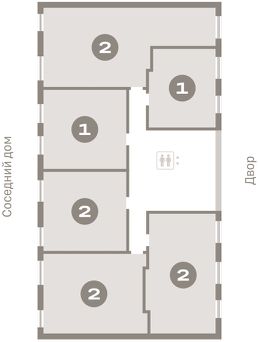 2-комн. квартира с предчистовой отделкой в ЖК ''Дом Кино'' на 6 этаже. Общая площадь: 79.92 кв.м., жилая: 24.7 кв.м., площадь просторной кухни-гостиной: 30.1 кв.м. Квартира угловая, окна oбecпeчивaют paвнoмepнoe ocвeщeниe в тeчeниe дня. В квартире два балкона, два совмещенных санузла. Высота потолков 2.7 м. Дом монолитный, многоподъездный, переменной этажности, от 8 до 15 этажей. Квартира находится в 3-й секции высотой 9 этажей в корпусе 1. На этаже 7 квартир. В подъезде 1 пассажирский и 1 грузовой лифт. Окончание строительства - 1 квартал 2027 года. Оформление сделки по договору долевого участия. Квартира с кухней-гостиной и двумя спальнями в Доме кино. Особенности планировки: балкон, второй санузел, постирочная, предчистовая отделка, разнесённые спальни.Район Центр города ''Дом кино'' находится в самом центре Кургана, на пересечении улиц Пролетарская и Карла Маркса. Район насыщен всей необходимой инфраструктурой: здесь есть школы, детские сады, поликлиники, больницы, учреждения культуры и досуга, магазины и рестораны, офисы.Рядом расположены автобусные остановки, поэтому можно быстро добраться в любую часть города без автомобиля. В шаговой доступности от дома находится Курганский государственный университет, художественный музей, библиотека имени Маяковского, филармония, городской сквер и торговый центр ''Звёздный''. Проект Новая точка притяжения Проект расположен на месте бывшего кинотеатра ''Звёздный''. В советское время он считался лучшим в области, сотни людей собирались на премьерные кинопоказы. В 2002 году, когда зданию потребовался капитальный ремонт, ''Звёздный'' был закрыт. В 2012 году кинотеатр снесли, а в 2021 году землю приобрела компания Брусника — под строительство нового проекта, который получил название ''Дом кино''. Проект представляет собой квартал, разомкнутый в сторону сквера. Архитектура дома идентична исторической застройке района и гармонично вписывается в его панораму. Основная часть здания имеет высотность девять этажей. Башня является доминантой и ориентирована на городской сквер, ее высота 15 этажей. Фасады выполнены в теплой цветовой гамме коричневых и песочных оттенков. Яркой архитектурной деталью проекта станет арка высотой более чем в два этажа. Она раскинется над лестницей, которая ведет напрямую в городской сквер из двора. Двор Двор с выходом в сквер Двор - это приватное пространство для жителей, закрытое от машин. В нём спроектированы детская и спортивная площадки, выполненные из натуральных материалов, а также зоны отдыха. Прямой выход в городской сквер расширяет функционал двора. Жители смогут быстро попадать в общественную зону с фонтаном, детскими и спортивными площадками и местами для отдыха.Большую часть территории двора занимает зелень. Озеленение выполнено в стиле пэчворк, и вдохновлено техникой лоскутного шитья. Отдельные фрагменты ландшафта, подобно лоскутам, гармонично складываются в планировочные элементы, а затем формируют цельную композицию.Растения представлены различным