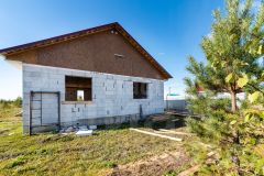 Недостроенный дом из газобетона 11.5 * 7,5 метров, есть второй этаж, двое больших ворот, электричество 380, газ по границе участка, на участке есть сарай