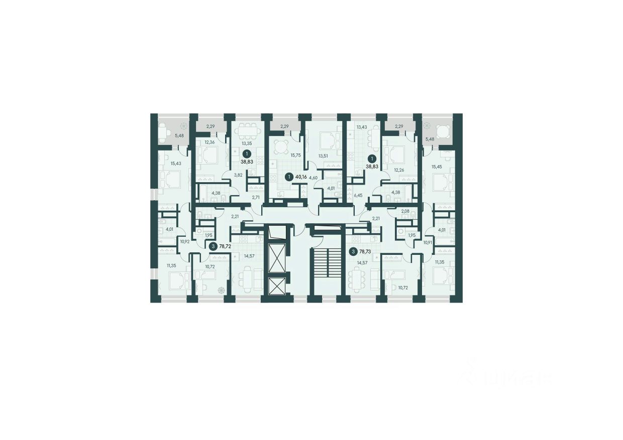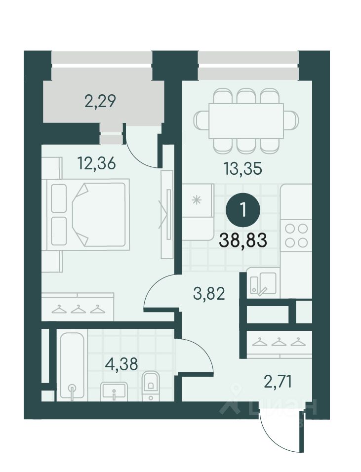 Общая площадь38,83 м2