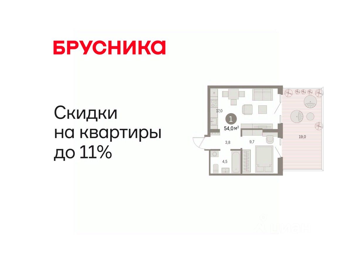 Продается 1-комн. квартира от застройщика с предчистовой отделкой в ЖК ''Дом Кино'' на 2 этаже. Общая площадь: 53.98 кв.м., жилая: 9.7 кв.м., площадь просторной кухни-гостиной: 17 кв.м. Все окна выходят на одну сторону. В квартире один балкон, один совмещенный санузел. Наличие террасы в квартире дает возможность для создания зон отдыха в кругу семьи и друзей. Высота потолков 2.7 м.