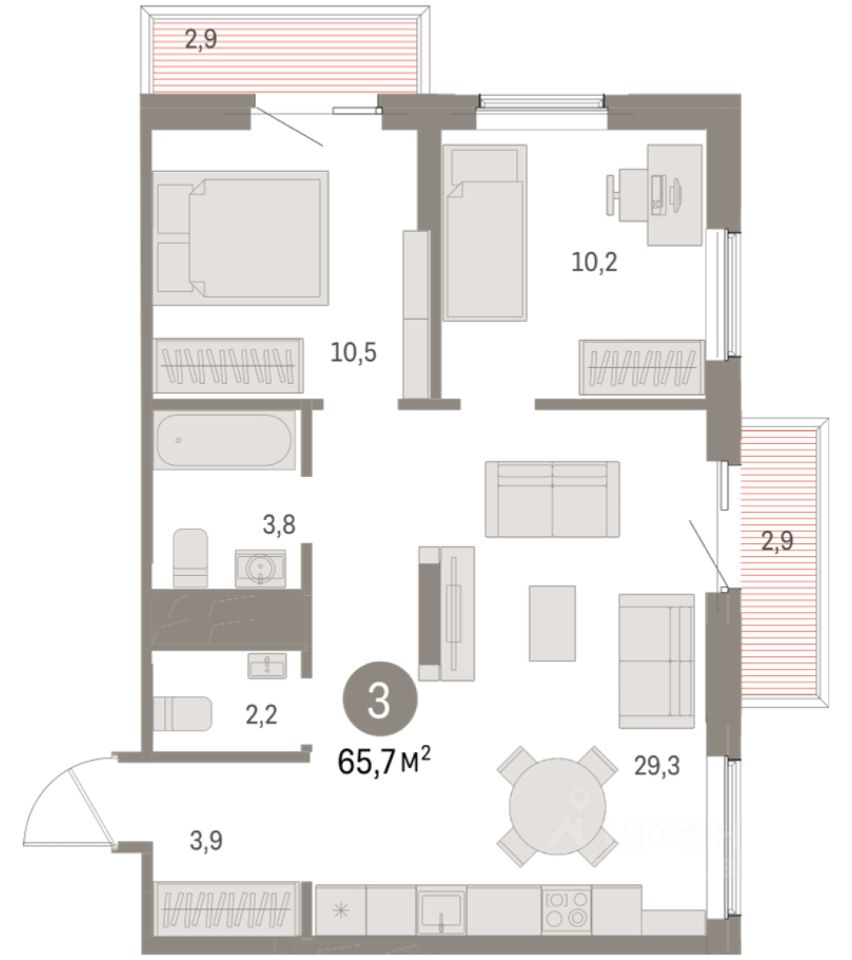 Общая площадь65,67 м2