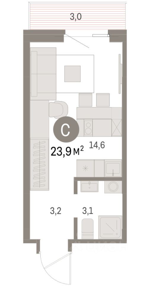 Общая площадь23,91 м2