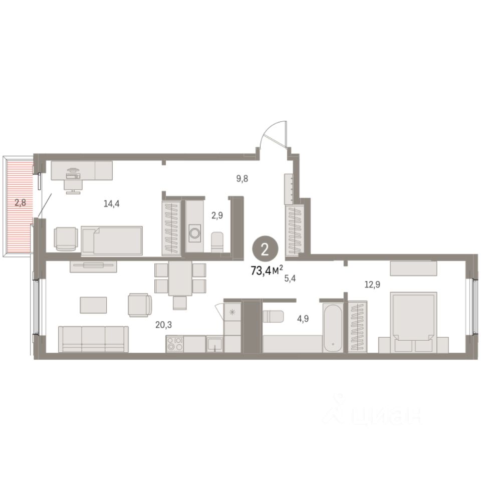 Общая площадь73,4 м2