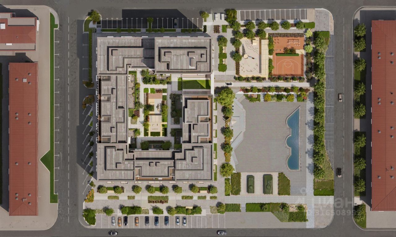 Двор с выходом в сквер Двор - это приватное пространство для жителей, закрытое от машин. В нём спроектированы детская и спортивная площадки, выполненные из натуральных материалов, а также зоны отдыха. Прямой выход в городской сквер расширяет функционал двора. Жители смогут быстро попадать в общественную зону с фонтаном, детскими и спортивными площадками и местами для отдыха. Большую часть территории двора занимает зелень. Озеленение выполнено в стиле пэчворк, и вдохновлено техникой лоскутного шитья. Отдельные фрагменты ландшафта, подобно лоскутам, гармонично складываются в планировочные элементы, а затем формируют цельную композицию. Растения представлены различными вида