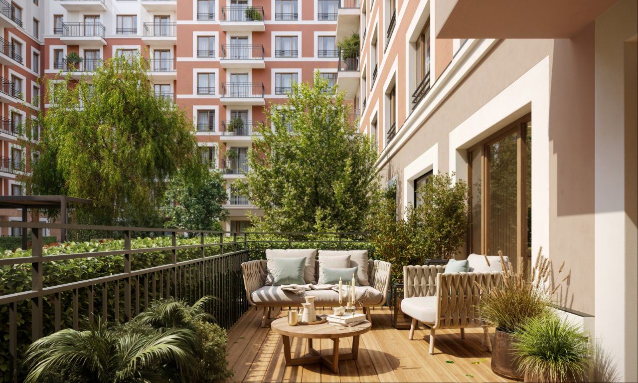 Двор с выходом в сквер Двор - это приватное пространство для жителей, закрытое от машин. В нём спроектированы детская и спортивная площадки, выполненные из натуральных материалов, а также зоны отдыха. Прямой выход в городской сквер расширяет функционал двора. Жители смогут быстро попадать в общественную зону с фонтаном, детскими и спортивными площадками и местами для отдыха. Большую часть территории двора занимает зелень. Озеленение выполнено в стиле пэчворк, и вдохновлено техникой лоскутного шитья. Отдельные фрагменты ландшафта, подобно лоскутам, гармонично складываются в планировочные элементы, а затем формируют цельную композицию. Растения представлены различными видами деревьев, кустарников, а также цветущими многолетниками. Зе