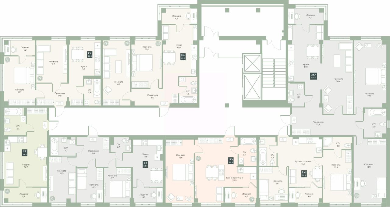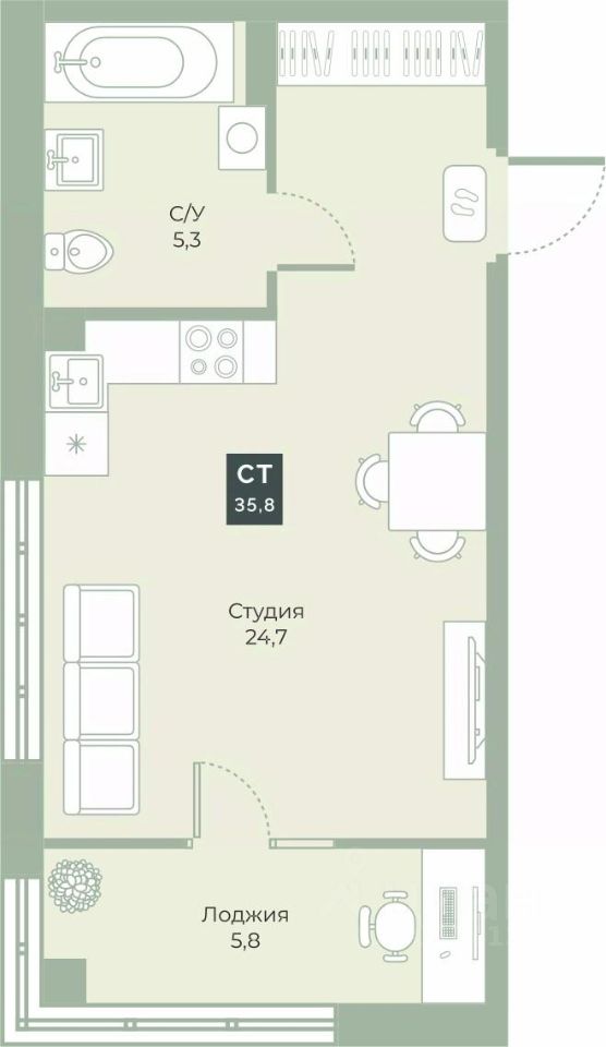 Квартира с предчистовой отделкой, с продуманной функциональной планировкой: кухня-гостиная м2, жилая площадь 24.7м2, высота потолка 2,76 м.