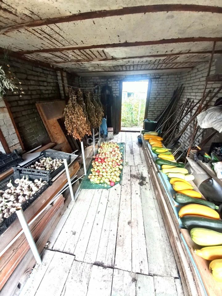 На территории участка есть 3 колодца, для удобства один из них в близи бани. Есть летний , закрытый душ и уличный но комфортный туалет , где установлен унитаз. на участке есть кирпичный навес где удобно в летнее время складировать урожай, металлический гараж. Вход в дом осуществляется через 2 больших, просторных гаража где можно ставить 2 машины (официально оформлены, есть документы), так же есть отдельно большие ворота для въезда машины на участок.