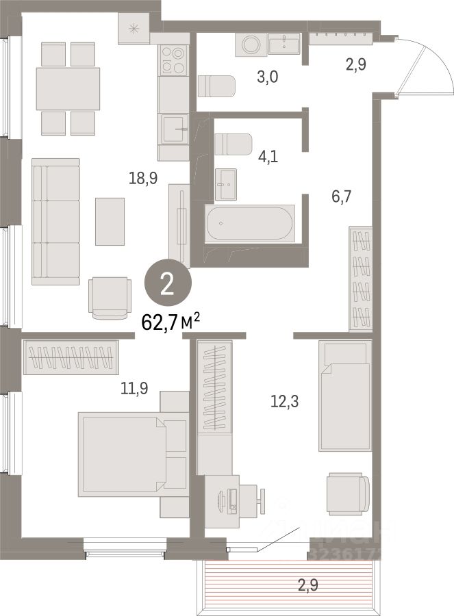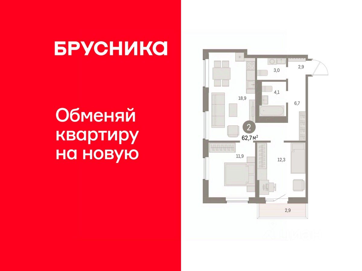 Продается двухкомнатная квартира с предчистовой отделкой в ЖК ''Дом Кино'' на 12 этаже. Общая площадь: 62.65 кв.м., жилая: 24.2 кв.м., площадь просторной кухни-гостиной: 18.9 кв.м. Квартира угловая, идеально подойдет любителям тишины и панорамных видов. В квартире один балкон, один совмещенный и один раздельный санузел. Высота потолков 2.7 м.