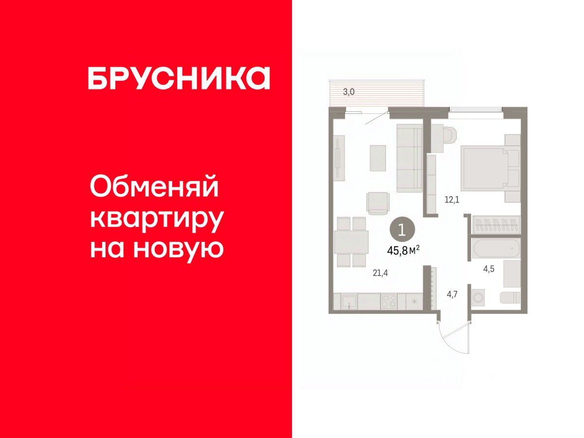 Общая площадь45,75 м2