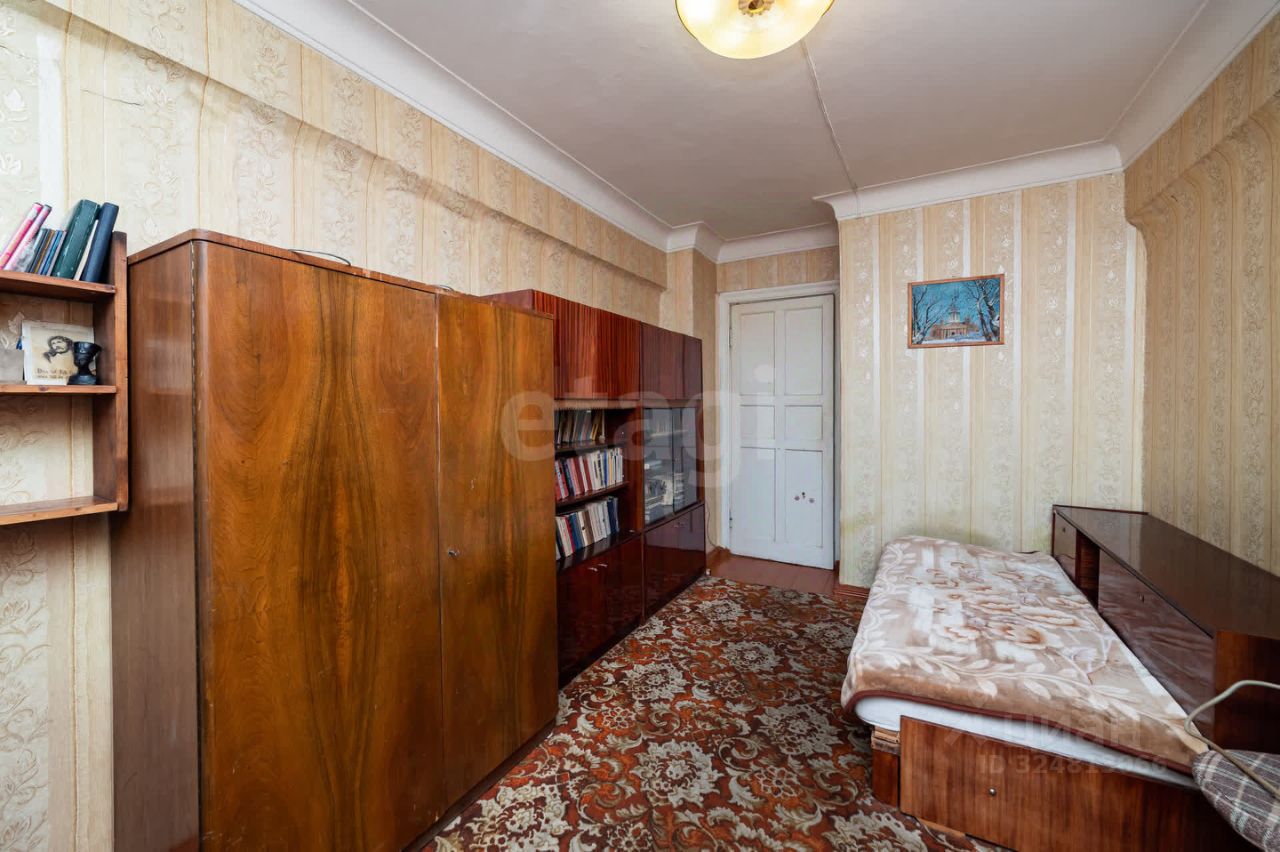 Продается 3-х комнатная квартира в центре города. Дом 1957 года, построенный по проекту сталинских застроек. Характерной и исключительной особенностью квартиры являются высокие потолки 3 м, просторные изолированные комнаты, толстые стены, хорошая шумоизоляция. Три окна выходят на солнечный двор. В квартире есть просторная кладовка, санузел раздельный. Квартира требует некоторых обновлений, ремонта, но и сейчас в ней чисто, и приятно находиться. Есть техника и мебель в стиле ''Советский шик'', антикварные шкафы идут в дополнение к продаже квартиры.