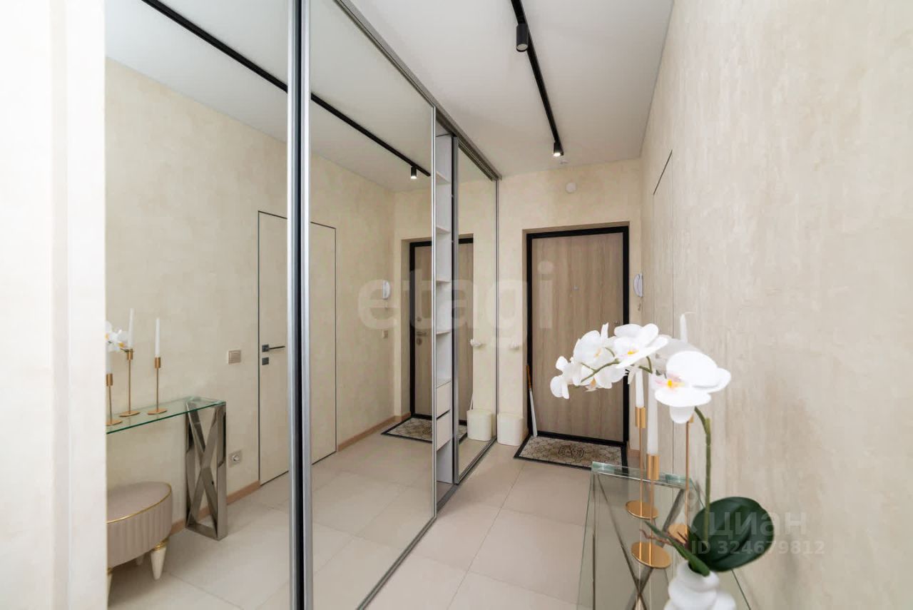 В комнате и коридоре встроены вместительные шкафы, в коридоре зеркальный. Комнатная дверь также зеркальная, что значительно расширяет пространство и добавляет воздуха.