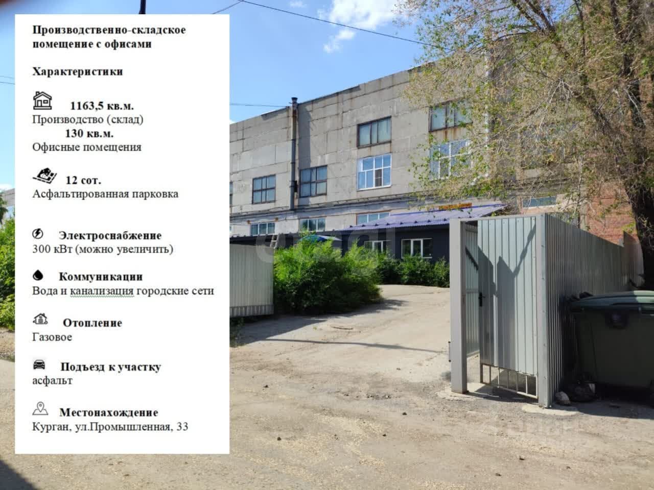 Продам коммерческое помещение — производственно-складское, расположенное на 1 этаже нежилого здания по улице Промышленная 33.