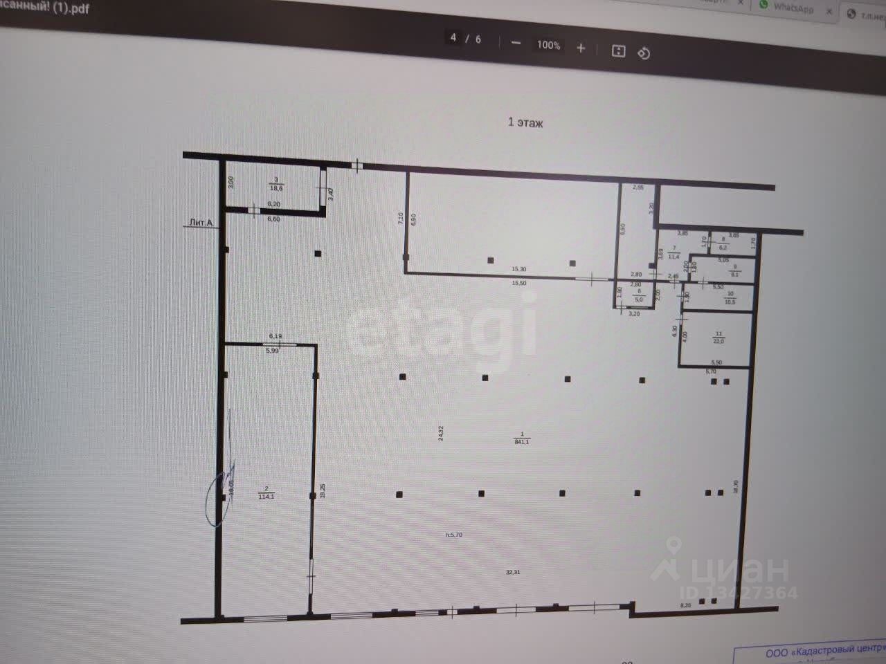 Площадь составляет 1163,5 кв.м., отдельно пристроены офисные помещения площадью 130 кв.м.