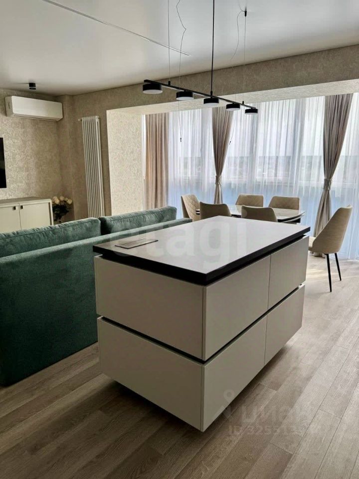 После покупки квартиры полностью была снята вся старая штукатурка до кирпича, демонтированы все перегородки, включая санузлы, смонтированы новые перегородки из силикатного блока( без ГКЛ,что улучшает шумоизоляцию и препятствует появлению трещин) оштукатурены все стены по маячковому профилю, сделана высококачественная стяжка с использованием армирования и пластификаторов ,выполнена новая медная электропроводка по проекту, сделан электрический тёплый пол в гостиной, санузле и ванной комнате. Установлены новые стеклопакеты Вrusbох 70 в пол тёплый профиль с заводской тонировкой снизу и мультистеклом сверху, новая входная и межкомнатные двери, новые радиаторы отопления, включая дизайнерский, сделана сварка газовой трубы с новым счтчиком и установкой заглушки( решили поставить электрическую индукционную плиту), проложена трасса под 2 кондиционера(установлены новые инверторные кондиционеры) На стенах обои под декоративную штукатурку подобранные дизайнером, на полу водостойкое SРС каменно-полимерное покрытие ''Дуб Стоктон'' приклеено к полу (при повреждении легко заменить плашку, в отличии от плавающего способа укладки)установлен алюминиевый чёрный напольный плинтус. В ванной комнате и санузле крупноформатный керамогранит LАРАRЕТ, установлено душевое ограждение с поддоном из камня, подвесная раковина с зеркалом, всё со светодиодной подсветкой, сделана тёплая стена для полотенец, инсталляция ,подвесной унитаз и гигиенический смеситель, установлен водонагреватель. Сшиты по заказу тюль и шторы из современного бархата с подбором дизайнера цветовой гаммы. Новая мебель Сhаrliе из Белоруссии . Установлена новая кухня с островом подобранная дизайнером, а так-же шкаф в маленький коридор и шкаф в санузел ,чтобы закрыть водонагреватель. Новая встроенная бытовая техника(индукционная варочная поверхность, микроволновая печь, духовой шкаф, вытяжка, холодильник, посудомоечная машина),а так-же стиральная машина всё фирмы LЕRАN самой новой и дорогой серии(всё на гарантии 2,3 года и с дополнительной гарантией 5 лет на стиральную машину, в случае чего , замена по гарантии без ремонта) 2 телевизора ТСL 55 диагональ в гостиной и SАМSUNG 43 диагональ в комнате. Новая кровать фирмы Аскона с подъёмным механизмом, ортопедическим матрацем и чехлом с гарантией 30 лет. Новый кухонный стол-трансформер из керамогранита. Диван фирмы Аскона ,кухонные стулья пр-во г. Ростов.