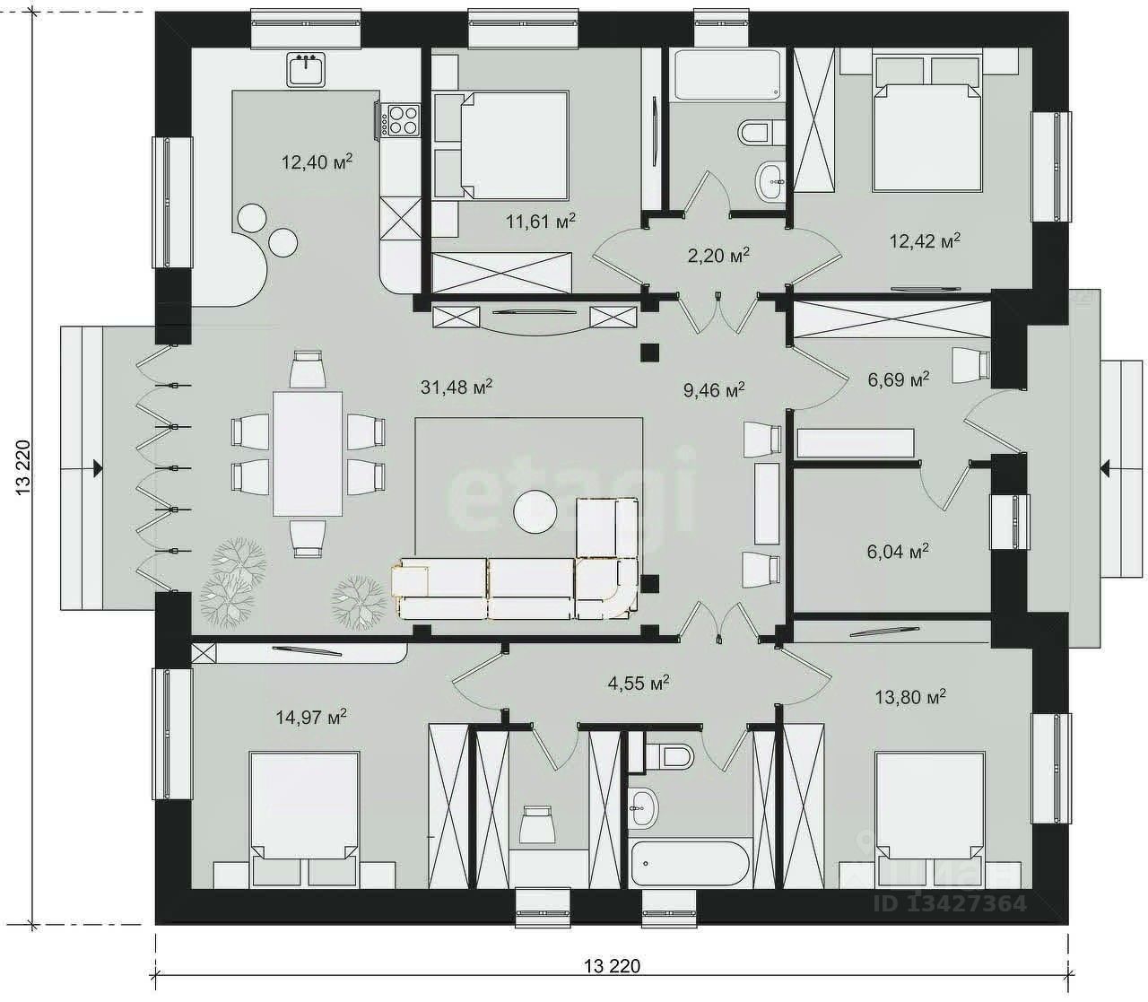 Общая площадь121 м2