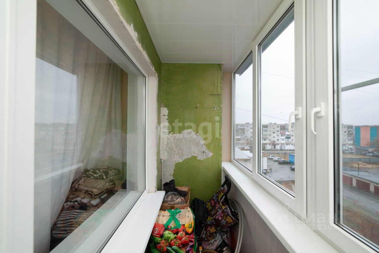 Окна установлены пластиковые, на лоджии установлен стеклопакет. На полу линолеум.