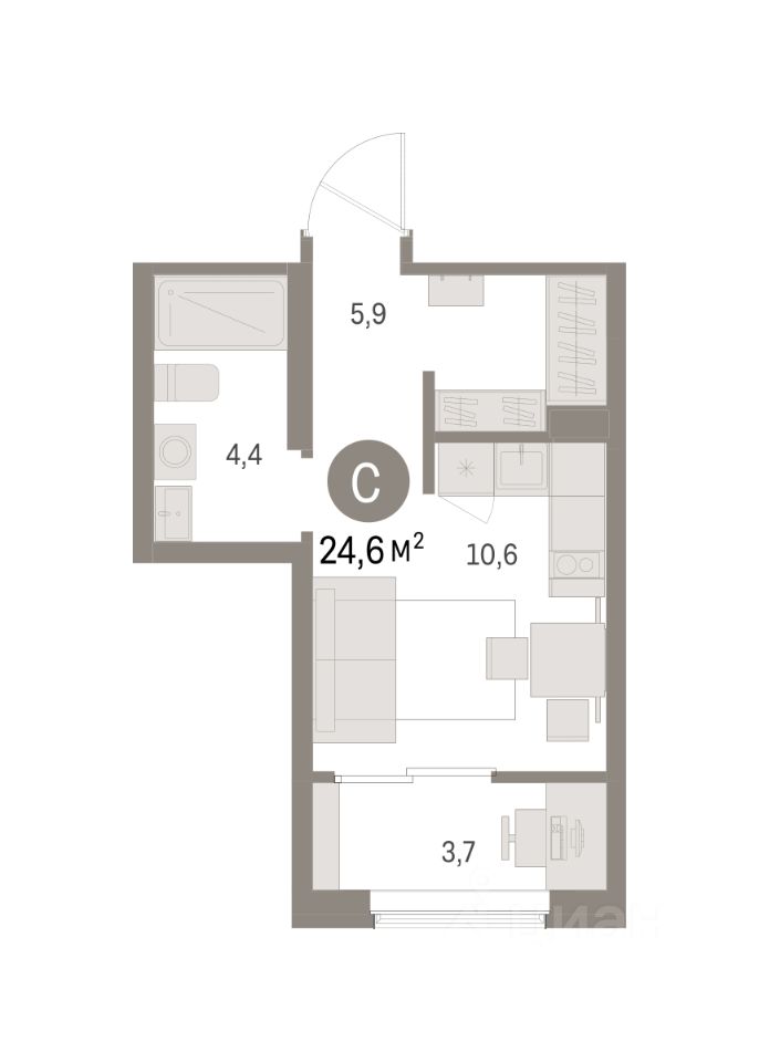 Общая площадь24,62 м2