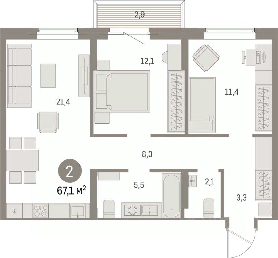 Общая площадь67,05 м2