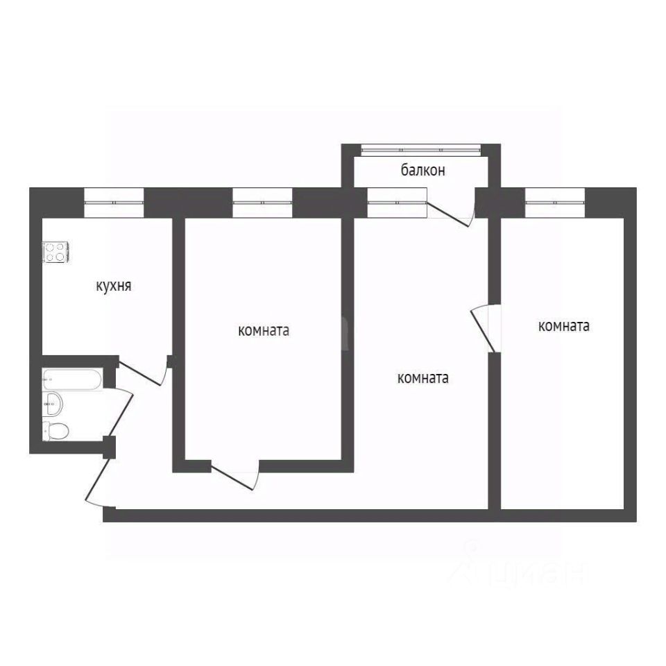 По планировке мы имеем : две изолированные комнаты и проходную гостиную.