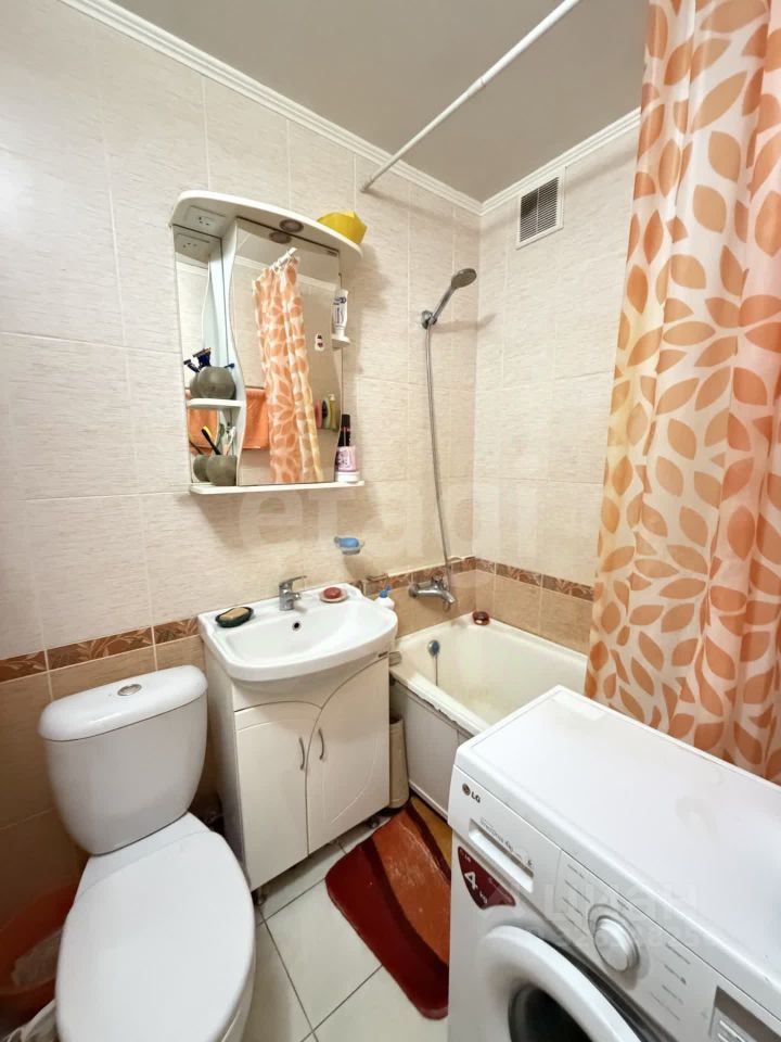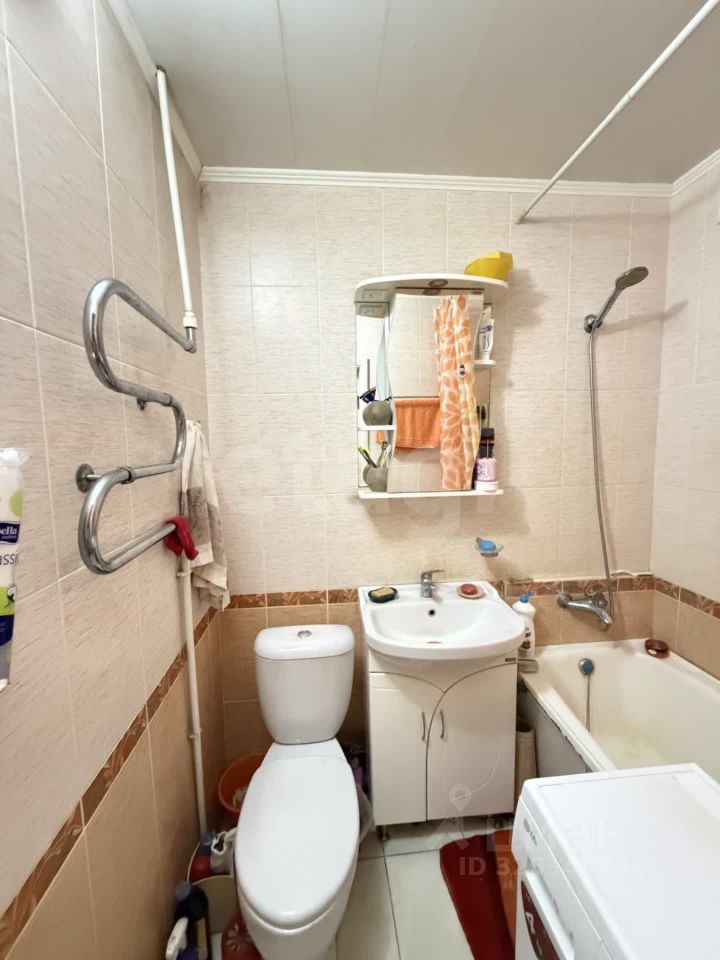 Ванная комната и сан/узел совмещены, выполнены в кафеле. Потолки везде выровнены, на полу ламинат.