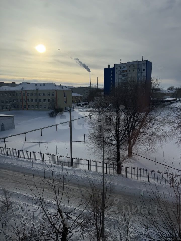 Квартира расположена на 4-ом этаже, не угловая. Все окна выходят на школу. Везде установлены стеклопакеты, балкон застеклен деревянными рамами.