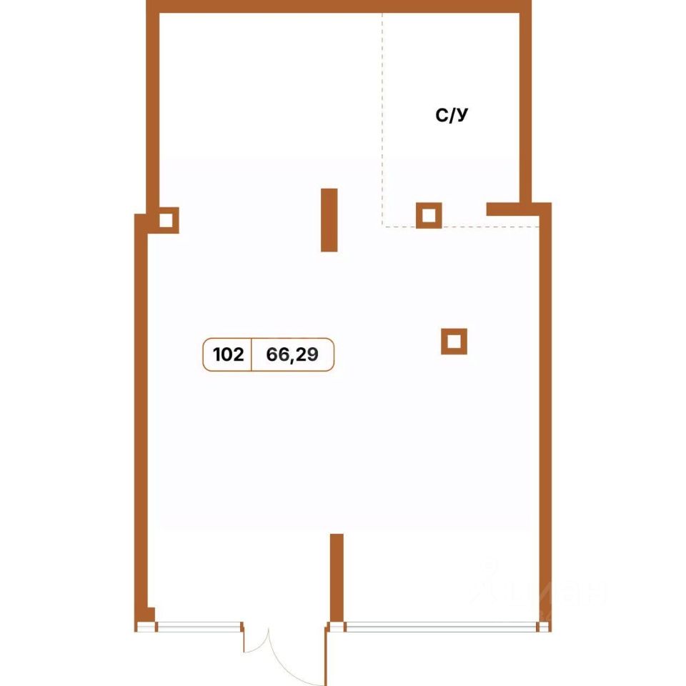 Помещение свободного назначения с 1 туалетом.
