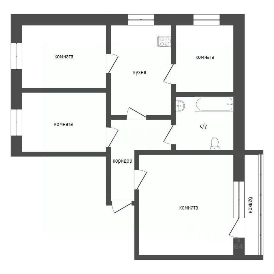 Продается четырехкомнатная квартира 76,6 м² на пятом этаже в панельном доме по адресу: Урицкого, 13.