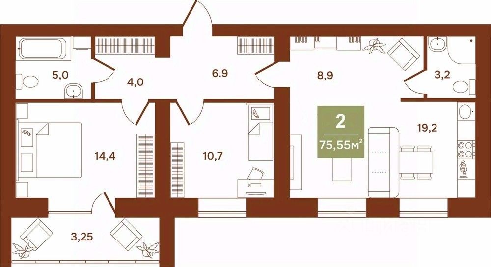 Продаётся 2-комнатная квартира в строящемся доме (Аргентовского, 125), срок сдачи: I-кв. 2027, общей площадью 75.55 кв.м., на 2 этаже. Новый жилой дом от застройщика ''Эверест'' расположен по адресу: г. Курган, улица Аргентовского.