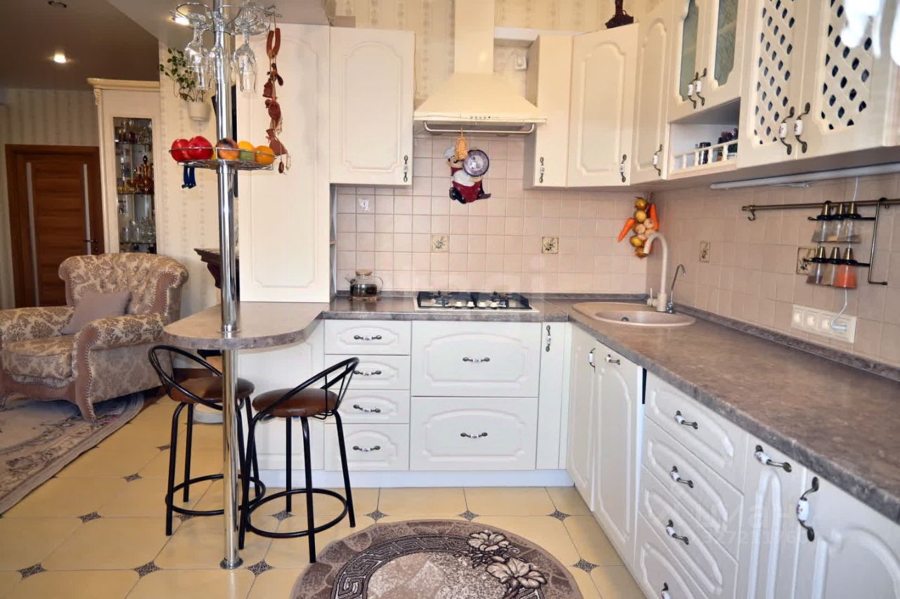 В квартире также объединена кухня с одной из комнат, перепланировка узаконена.